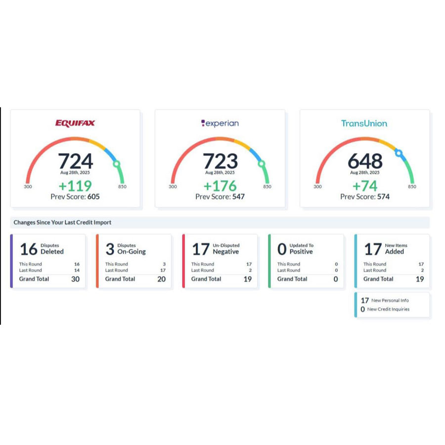 Two full rounds of dispute submissions across all three major credit bureaus.